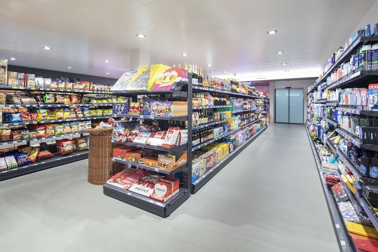 Uličky jsou dostatečně prostorné a celý obchod je pěkně přehledný a jednoduchý pro orientaci. Speciální nabídky na hezkých stolech či v prodejních koších tak mají šanci vyniknout. Pokladna je chytře doplněna o další regál plný cukrovinek, které se právě zde dobře prodávají.