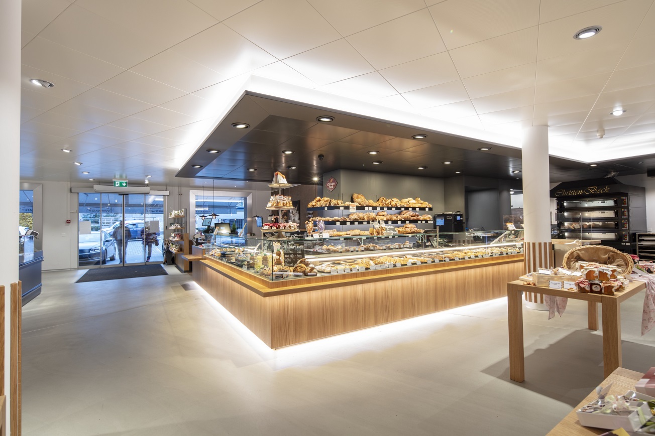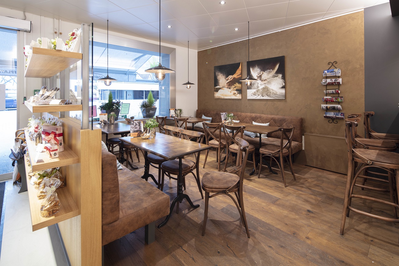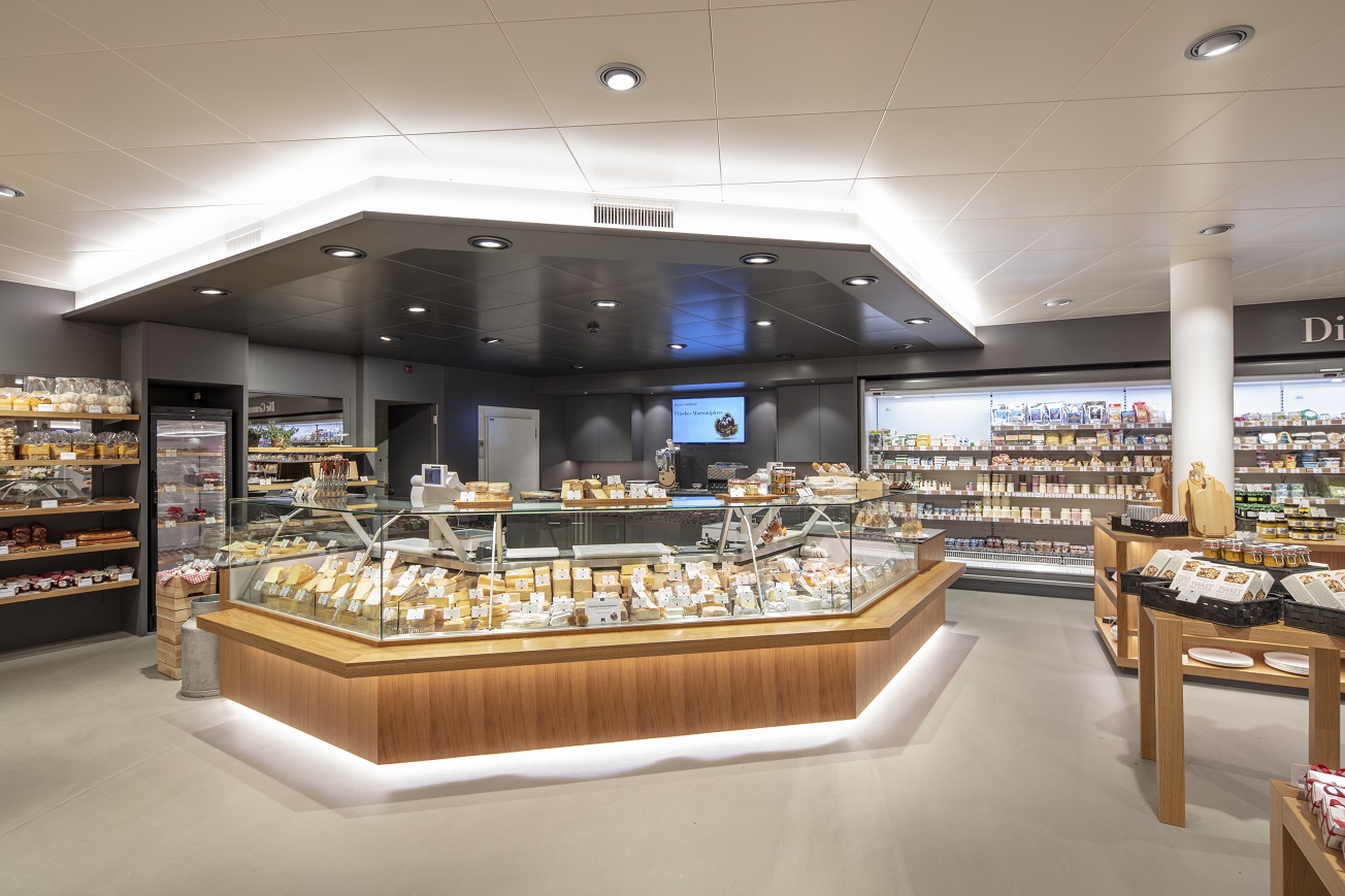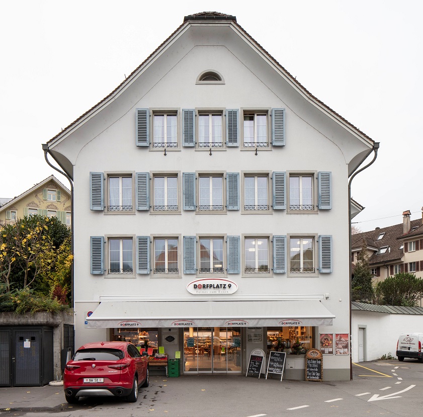 V krásně zrekonstruované prodejně Dorfplatz 9 ve městě Stans jsou vybudovány dva podsvícené obslužné pulty. Jeden určen pro nabídku tradičních švýcarských sýrů a ten druhý pro prodej pečiva, který zároveň slouží i jako imbiss. Na něj navazuje útulný jídelní koutek, kde si zákazníci čtou ranní noviny u kávy a croissantu.